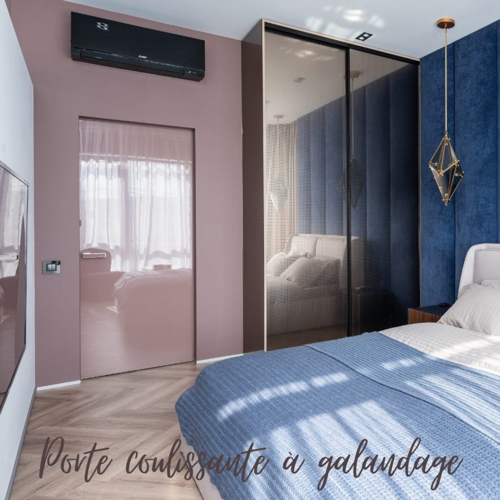 - Pour gagner de la place : les portes coulissantes en applique (devant la cloison) ou à galandage (dans la cloison) ; les portes pliantes