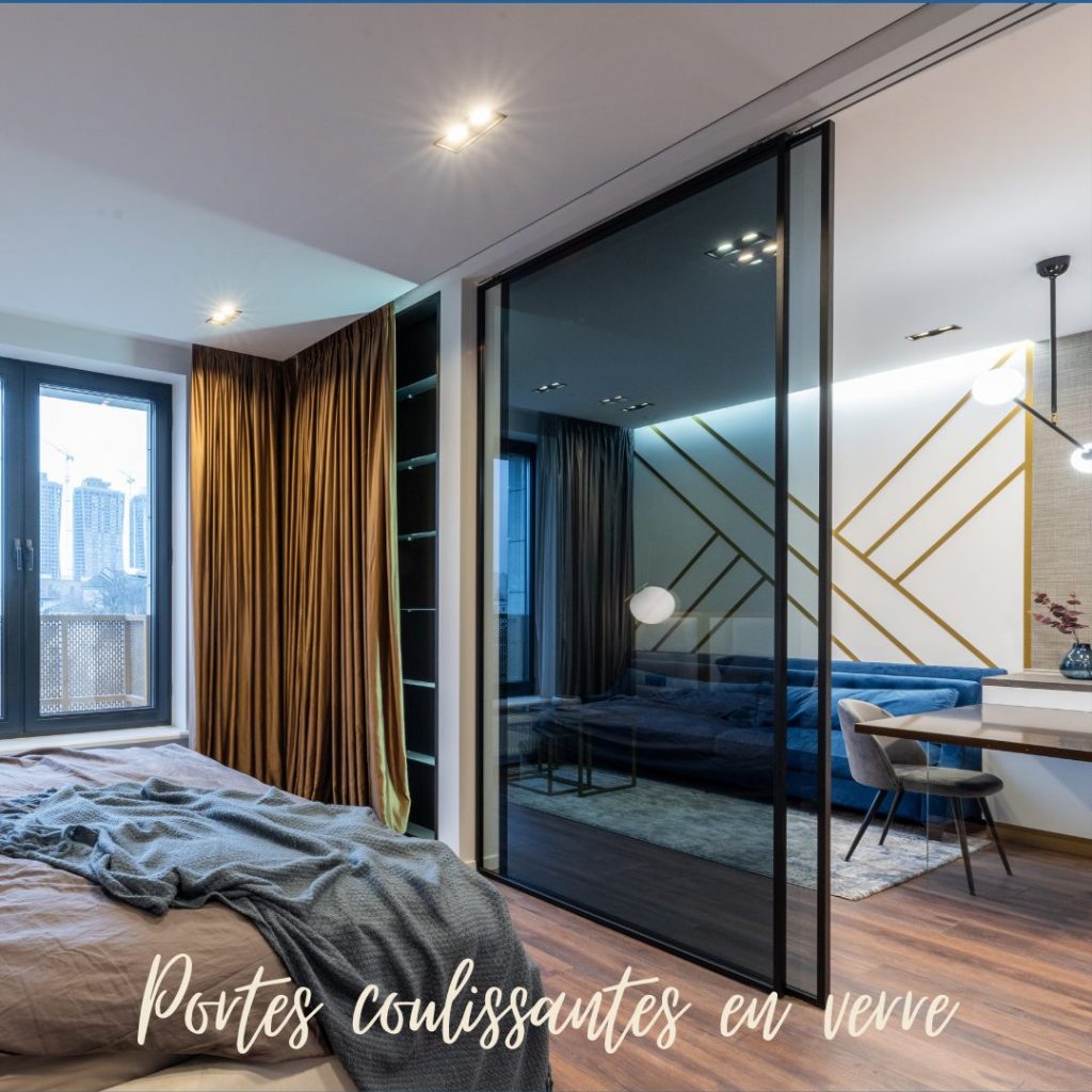 - Pour faire entrer la lumière et accentuer l’impression d’espace : les portes vitrées ou en verre